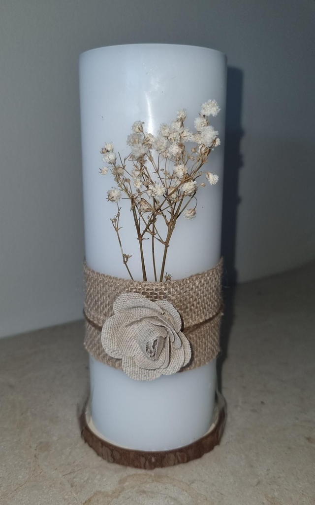 This large handcrafted pillar candle would make a perfect addition to your home. With its natural look rose with dried flowers it creates a stylish, homely look.